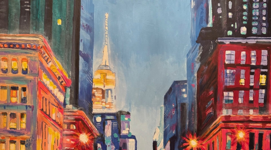“My new paintings Empire at Night and Cruisin’ New York were both inspired in part by Edward Hopper work in Nighthawks,” said George Throop. “My works present the loneliness of the late-night city but also capture its energy in the shadows of people moving about and the lives of a different nature being lived.”